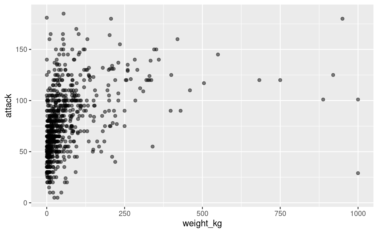 ggplot(pokemon, aes(weight_kg, attack)) +