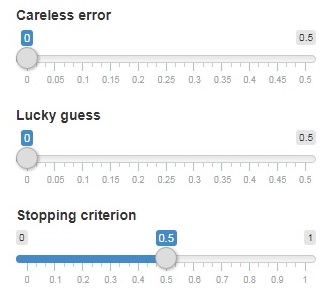 div(p("- The ",strong("lucky guess probabilities")," and the",strong("careless error probabilities"), ". You can tune lucky guess and careless error of the items.
